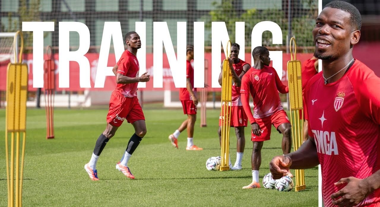 Paul Pogba looked confident and composed in his second training session with Monaco, showing off his trademark skill and power in midfield. Training also included game-situation sequences and strong involvement from the new faces in Monaco’s squad.